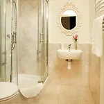 ويشتمل الحمام على مقصورة الدوش والمرحاض المنفصل، بالإضافة إلى ملاءات الحمام والمناشف.